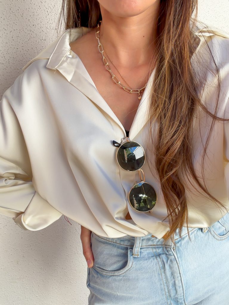 Lencera asimétrica café con encaje