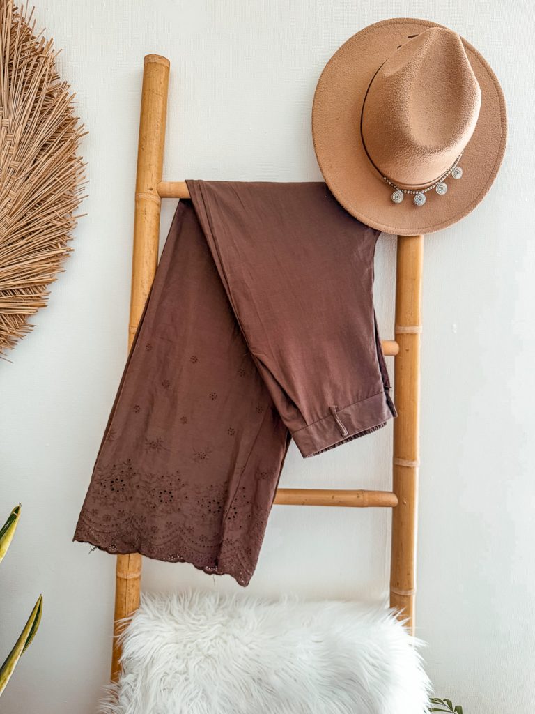 Pantalón Café con Detalle Broderie
