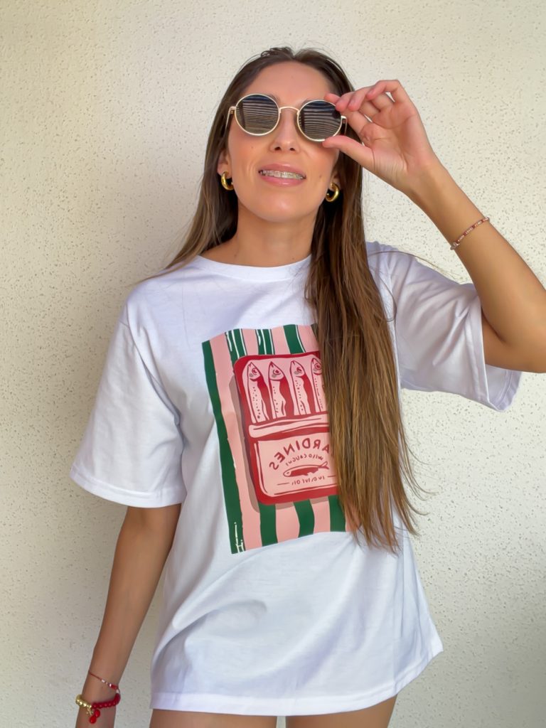 Polera Oversize Blanca con Estampado Engomado